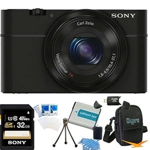 20.2 Megapixel Exmor 1inch CMOS Image Sensor The massive 20.2MP Exmor 1 inch CMOS sensor captures ultra-high definition images that take full advantage of the camera's sharp Carl Zeiss Vario-Sonnar T lens. The sensor enables advanced column A/D processing that reduces noise levels, resulting in astonishing low light images with incredible smooth and clear details Bright F1.8 Carl Zeiss Vario-Sonnar T Lens with 3.6x Optical Zoom This large-diameter F1.8 Carl Zeiss Vario-Sonnar T lens delivers refined background defocusing. It also features a premium multi-layered T coating that dramatically reduces ghost and flare caused by light reflection P/A/S/M Modes for Video & Stills Enjoy a full range of controls for video and still shooting from iAUTO mode to P/A/S/M: Program, Aperture Priority, Shutter Priority and Manual. There are even on-screen prompts which help you refine your skills, build your confidence and exercise greater creative control Capture JPEG Files, RAW Files, or Both The RX100 saves pictures as compact JPEG files and/or ultra-high quality RAW files. RAW files save images prior to de-mosaicing, white balance, sharpness and color enhancement. This retains maximum latitude for enhancing the image on your PC Full HD 1080/60p Video Capture Record crystal clear movies in Full HD 1080p at 60 fps. This provides stunning, fast motion video with less distortion for playback on your HDTV. Plus, with dual recording for stills and movies, you can shoot both at the same time Low-Light ISO 6400 Sensitivity Capture incredibly clear low-light pictures without sacrificing detail, thanks to the low-noise Exmor CMOS image sensor and refined BIONZ image processor High-Speed Auto Focus To improve focusing speed and sensitivity, the Exmor CMOS sensor uses its rapid throughput to deliver high-quality image signals to the camera's BIONZ processor, which provides intellig...