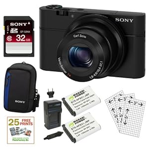Sony DSC-RX100 20.2 MP Exmor CMOS Sensor Digital Camera with 3.6x Zoom + 32GB Class 10 Memory Card + Wasabi Replacement NP-BX1 battery + Sony Soft Carry Case + Accessory Kit