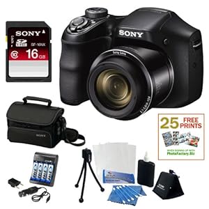 DSC-H200/B High zoom digital camera Black + 16GB Class 10 SD Memory Card + Small System Case + Flexible Tripod, Memory Card Wallet, 3pc Cleaning Kit & 3 Screen Protectors + NIMH AA 3100mah 4 Pack & AC/DC Charger + 25 Free Quality Photo Prints